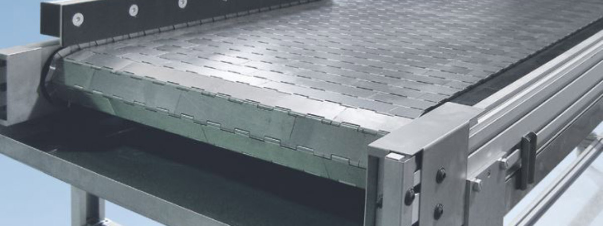Takket være sit stabile design er transportøren også velegnet til krævende kontinuerlig drift. Det robuste hængslede pladebælte fås også i rustfrit stål eller perforeret design på forespørgsel.